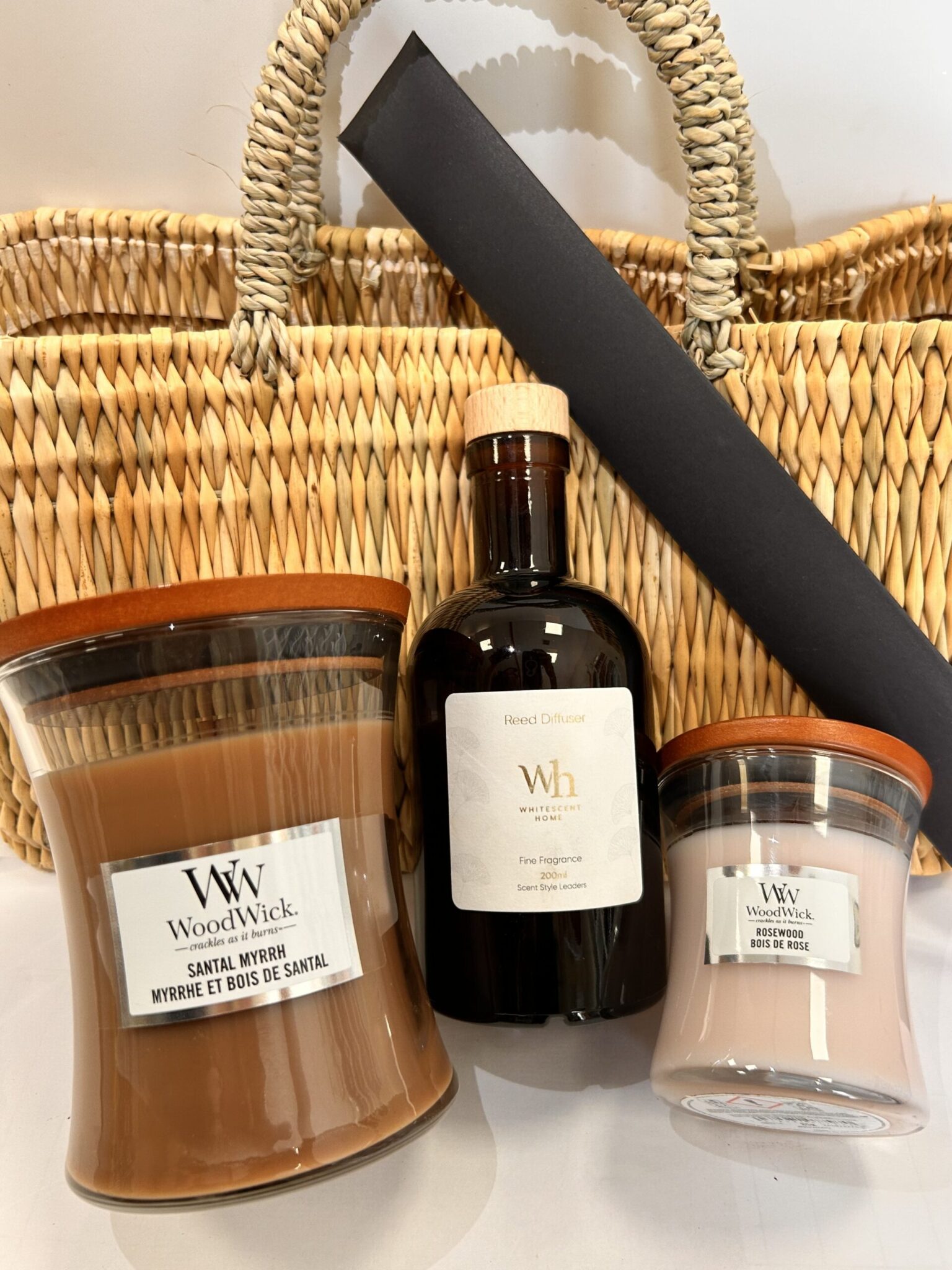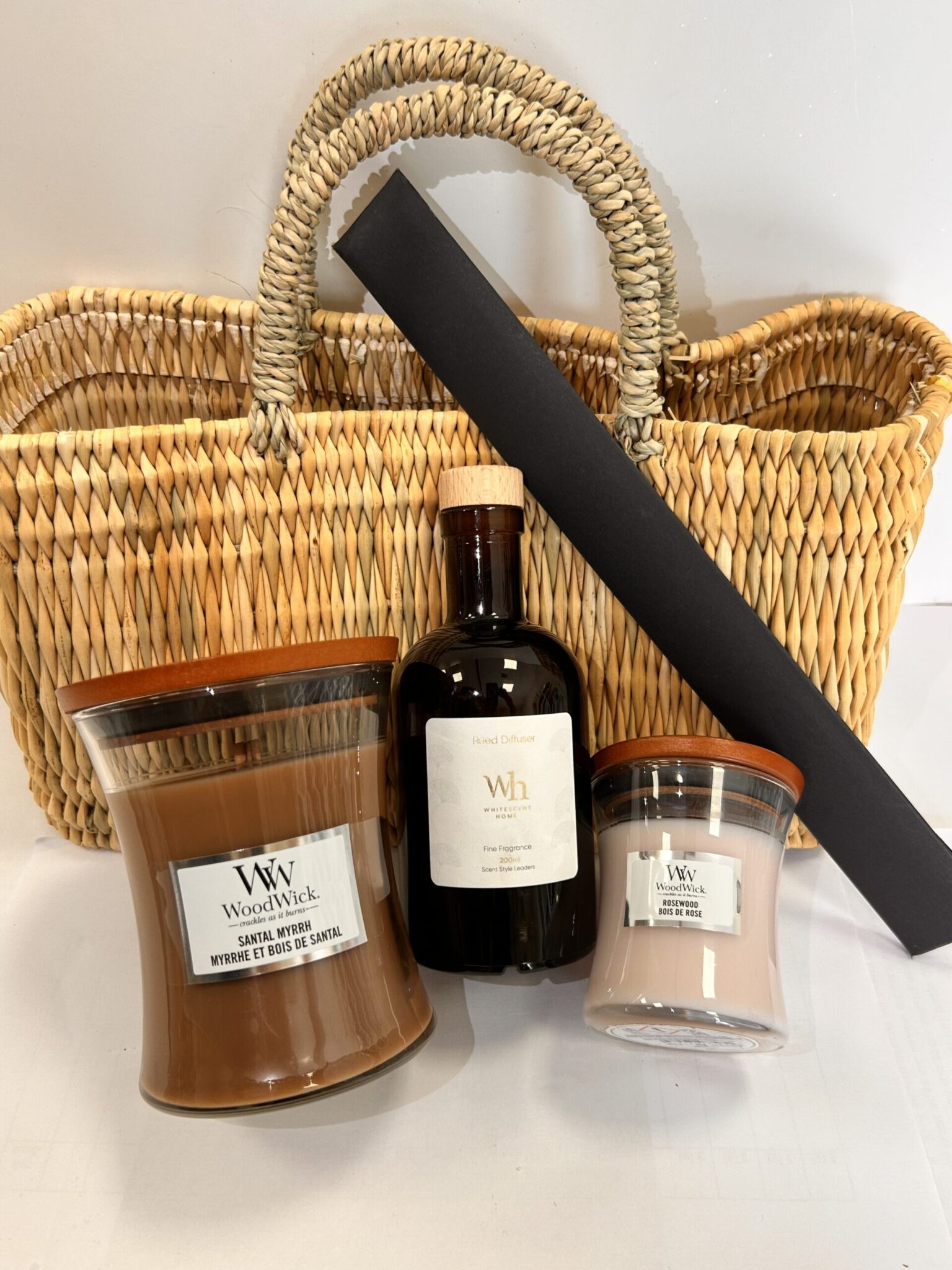 נר ריחני במארז מתנה בסל מרוקאי Santal