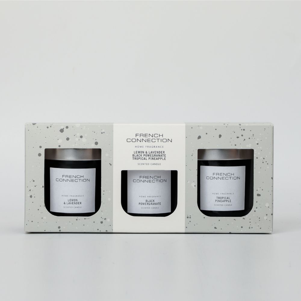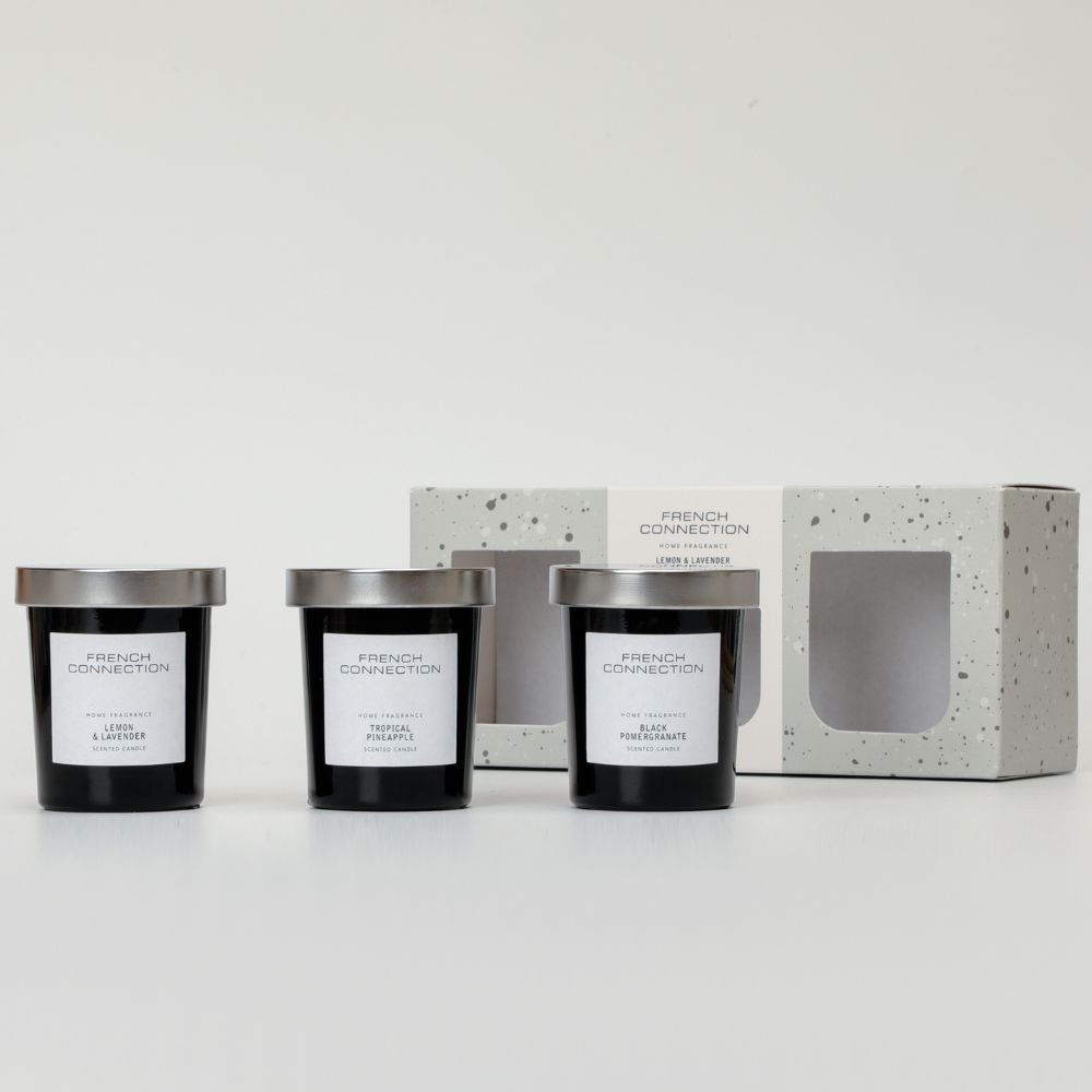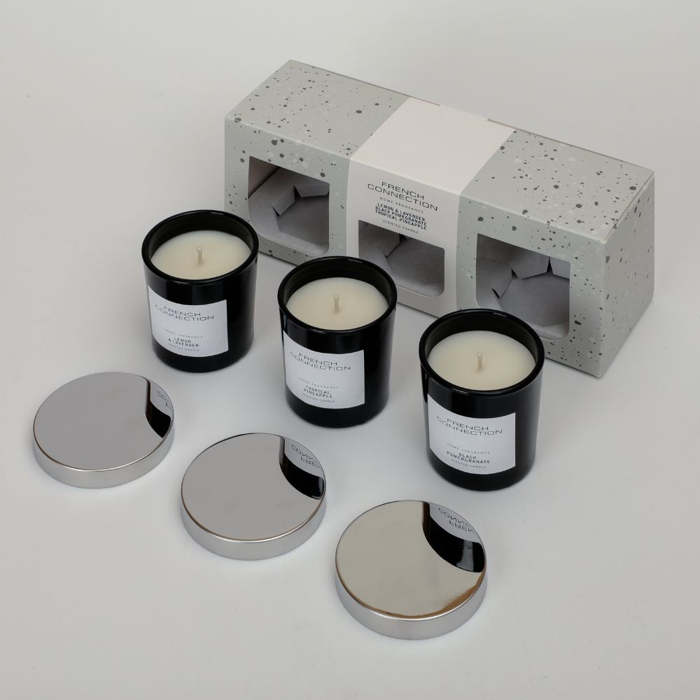 שלישיית נרות קטנים בריחות מרעננים ארוזים בקופסא יוקרתית: