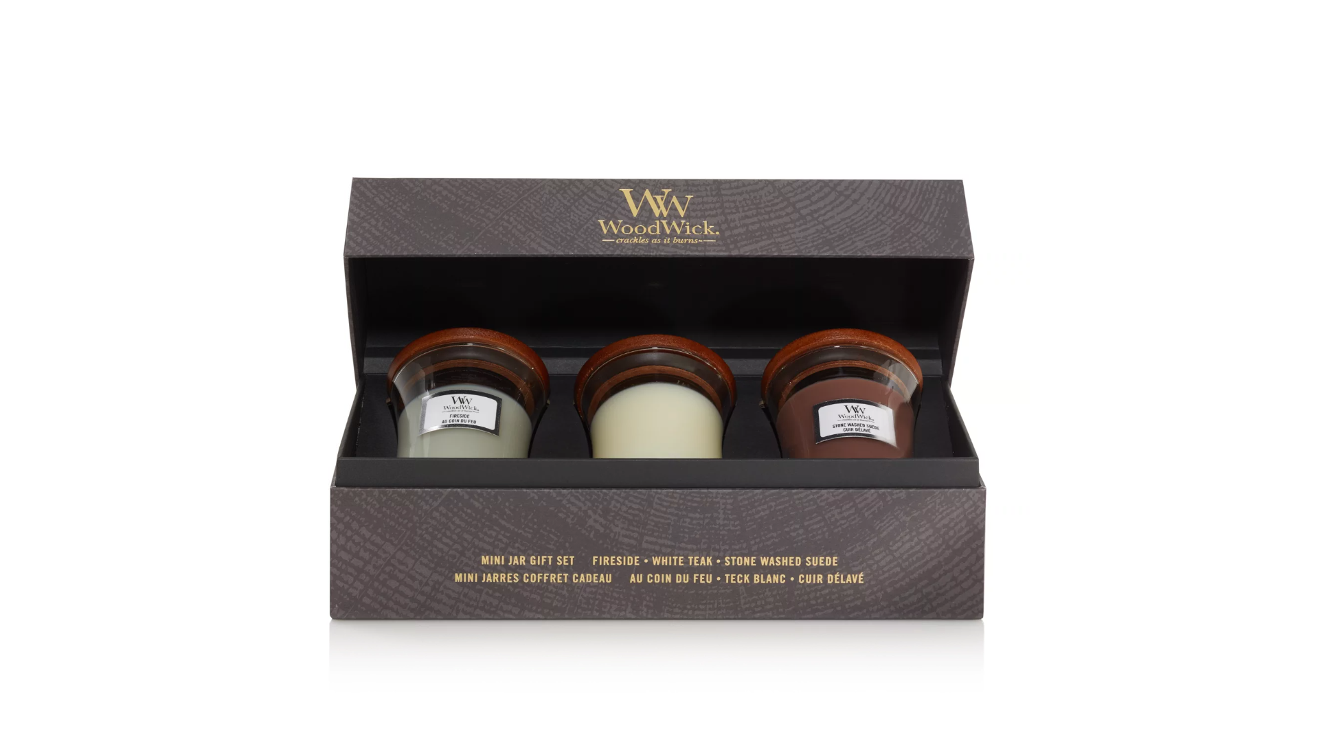 שלישיית נרות MINI בריחות עציים ומעושנים ארוזים בקופסא יוקרתית: