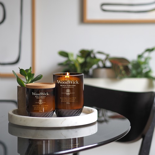 קולקציה חדשה ומעוצבת של WoodWick. תערובת שעוות סויה וקוקוס איכותית היצוקה לכוס זכוכית מהודרת בגווני חום אמבר. בקולקציה זו עולים רחשים עדינים של אח בוערת בעת הדלקת הנר. כל ניחוח מקולקציית הניחוחות ReNew מכילה מרכיבים על בסיס ביו, הכוללים חומרים ממוחזרים ושמנים אתריים. האריזה מורכבת מחומרים ממחוזרים ומחומרים הניתנים לשימוש חוזר.