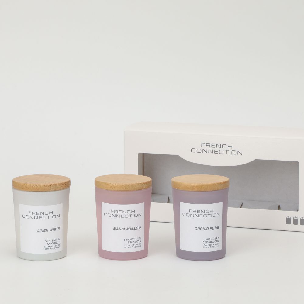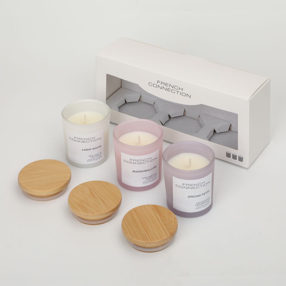 שלישיית נרות קטנים בריחות מרעננים ארוזים בקופסא יוקרתית:
