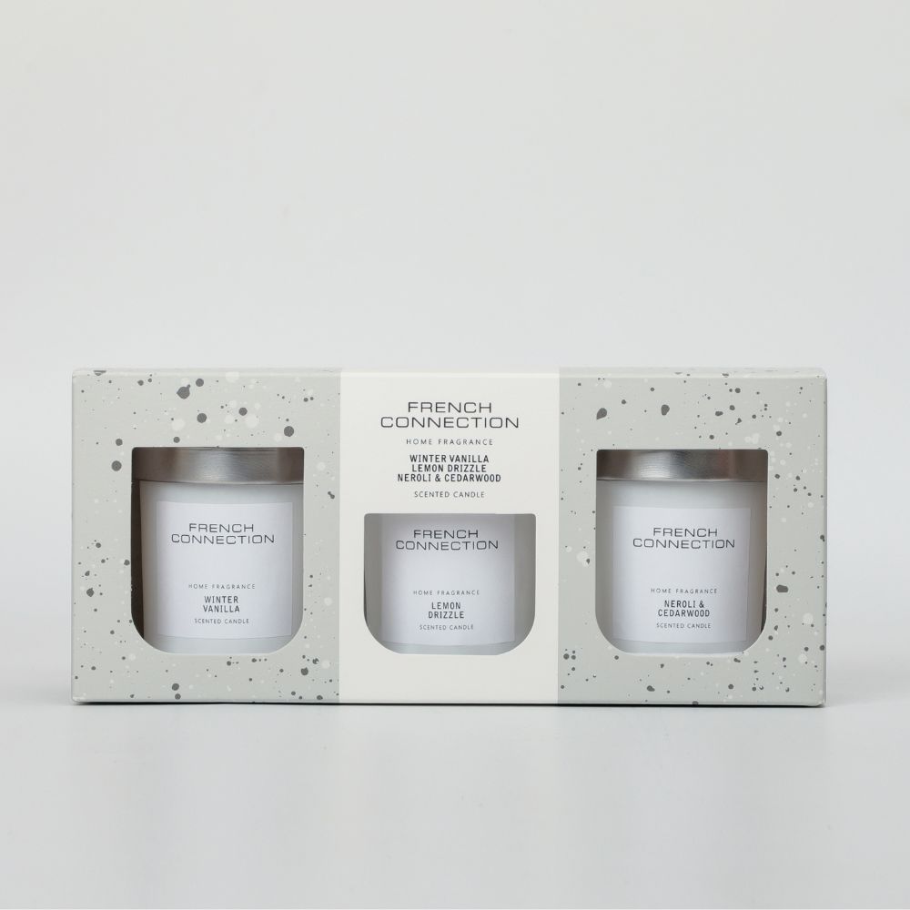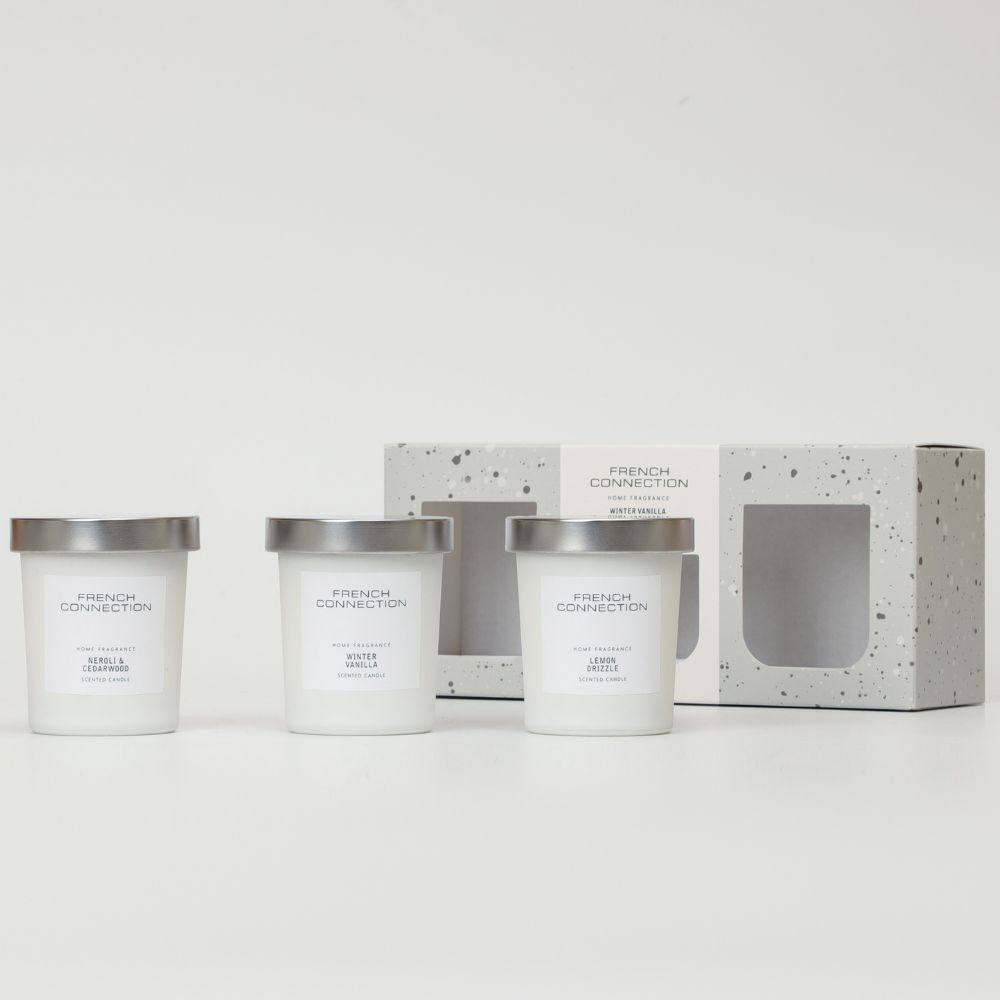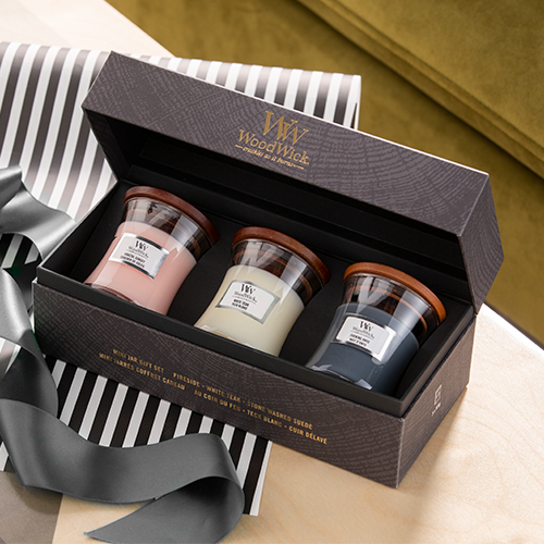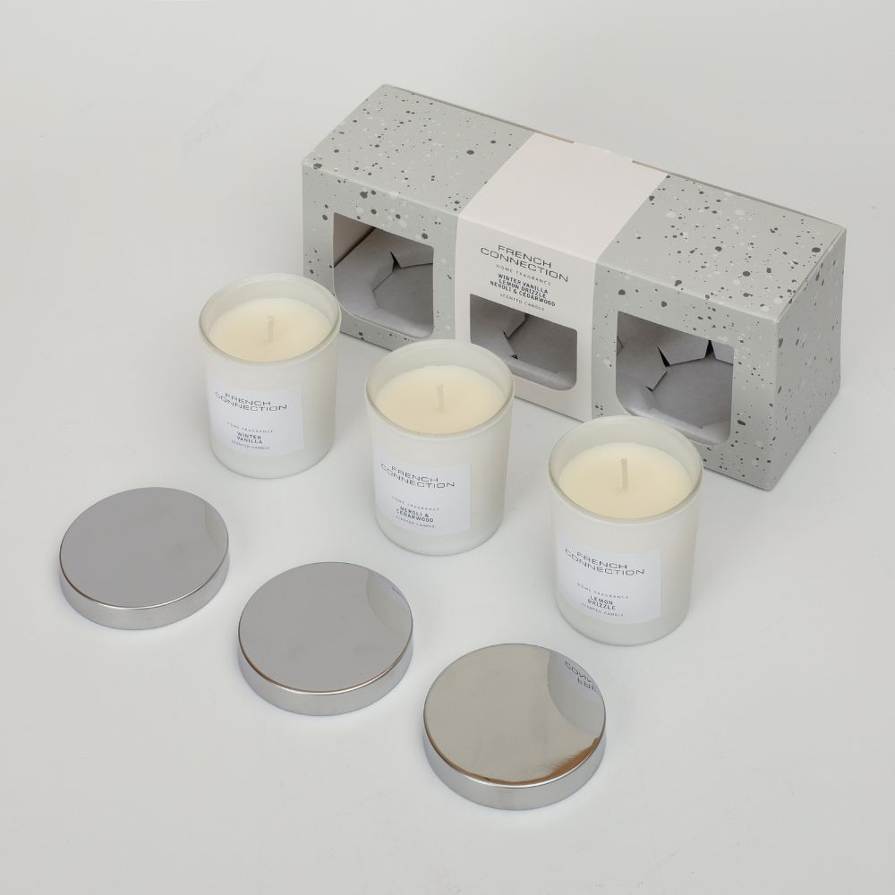 שלישיית נרות קטנים בריחות מרעננים ארוזים בקופסא יוקרתית:
